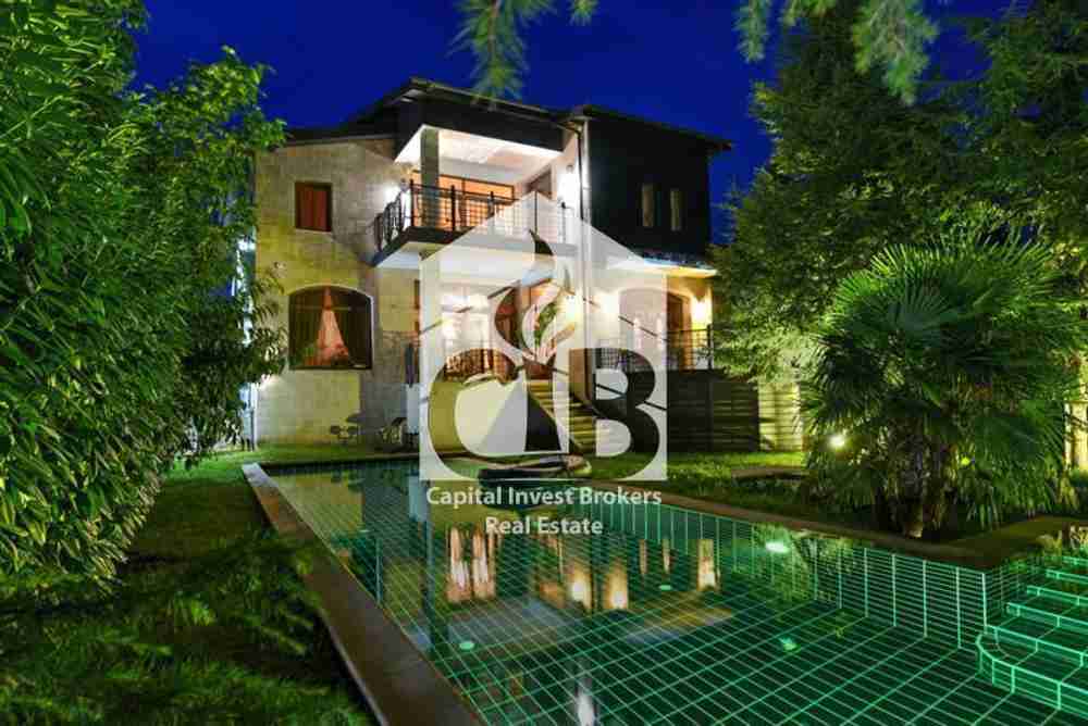 Описание: ОФЕРТА № 20018252. Капитал Инвест Брокерс предлага под наем луксозна къща, във високата част на Евксиноград. Имота е построен в парцел от 1070 кв.м. и жилищна площ от 760 кв.м. бутиков дизайн. Жилището се състои от сутерен пригоден за винарна, просторен хол, дневна с кухня, четири спални, гардеробна, пет бани, сауна, джакузи и емпоре.