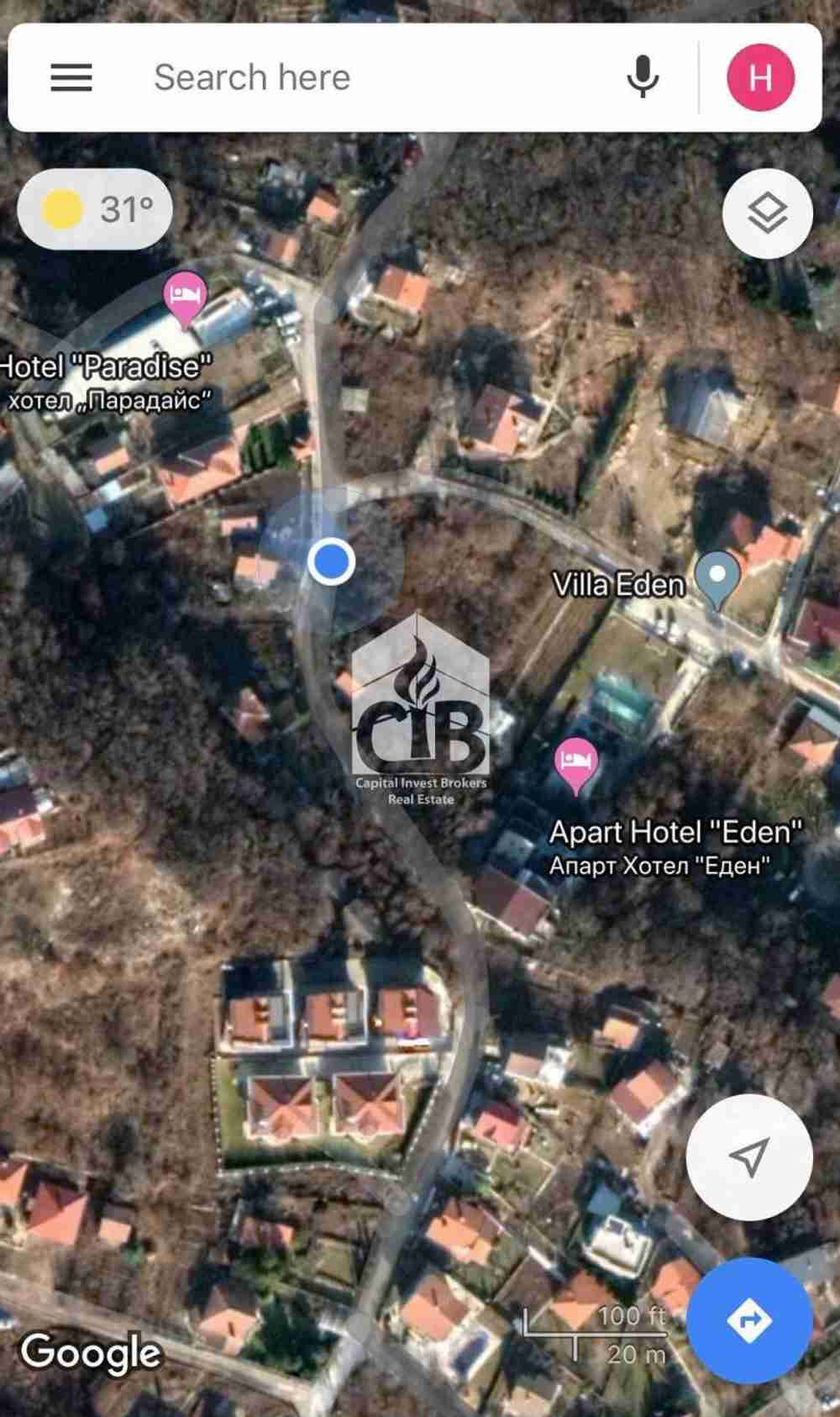 Намира се на гърба на Апартхотел Еден, близо до х-л Детелина, на метри от плажа на границата на кк Чайка и Ален Мак. В близост до хотели, вили, къщи. Място с ОТЛИЧНА инфраструктура.